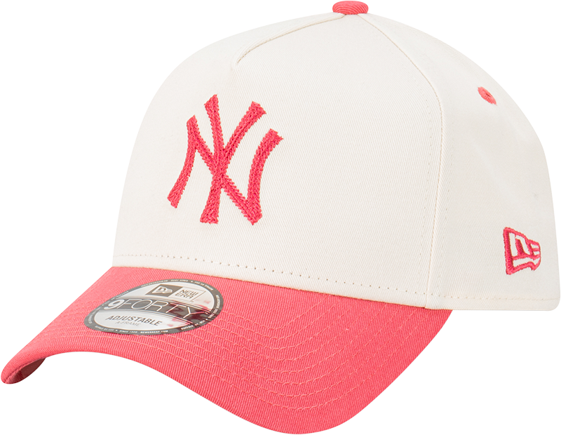 This NY Yankees 9FORTY A-Frame Snapback from New Era blends style and comfort for the modern fan. Show off your team spirit with this snapback that features a unique coral and vanilla color scheme. The iconic Yankees logo is boldly embroidered in a striking coral, making it stand out against the soft vanilla background.